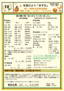 お知らせ(ブログより) 記事一覧 2024/05/16R7自立支援ケア会議様式について 2025/09/01子育てサポーター養成連続講座開講のお知らせ 2025/03/21福智町ヘルパーステーション、福智町地域包括支援センターの重要事項について(公表) 2025/02/01R7福智町地域包括支援センター 実績書類提出年間予定表 社協情報誌「ふれあい」 最新号をダウンロードします。(PDF) バックナンバーページへ 社協だより「きずな」 最新号をダウンロードします。(PDF) バックナンバーページへ 申込書 情報公表 学則 シラバス 日程表 担当講師 実習施設 修了評価 『だれもが安心して暮らせる福祉の町・・・福智町』を目指して 福智町社会福祉協議会は、地域の住民のみなさんと協力しながら、地域福祉活動・福祉サービス・介護などの事業への取り組みや福祉人材の育成、支援ネットワークの構築など、多様な福祉ニーズに応えるための事業を行う社会福祉法人です。 組織案内:社会福祉法人福智町社会福祉協議会について 会長あいさつ 運営理念・沿革 組織図 役員一覧 事業計画・予算 事業報告・決算